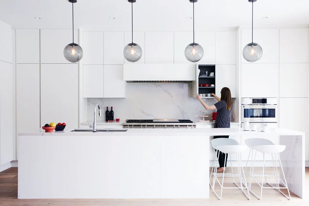 A new house designed for a growing young family, the Sutherland residence is a contemporary take on the traditional Leaside home. With a simple pitched roof and a brick exterior, it gets along with its neighbours, however its pop-out second storey windows and playful brick detailing are a hint at the modern interior within.