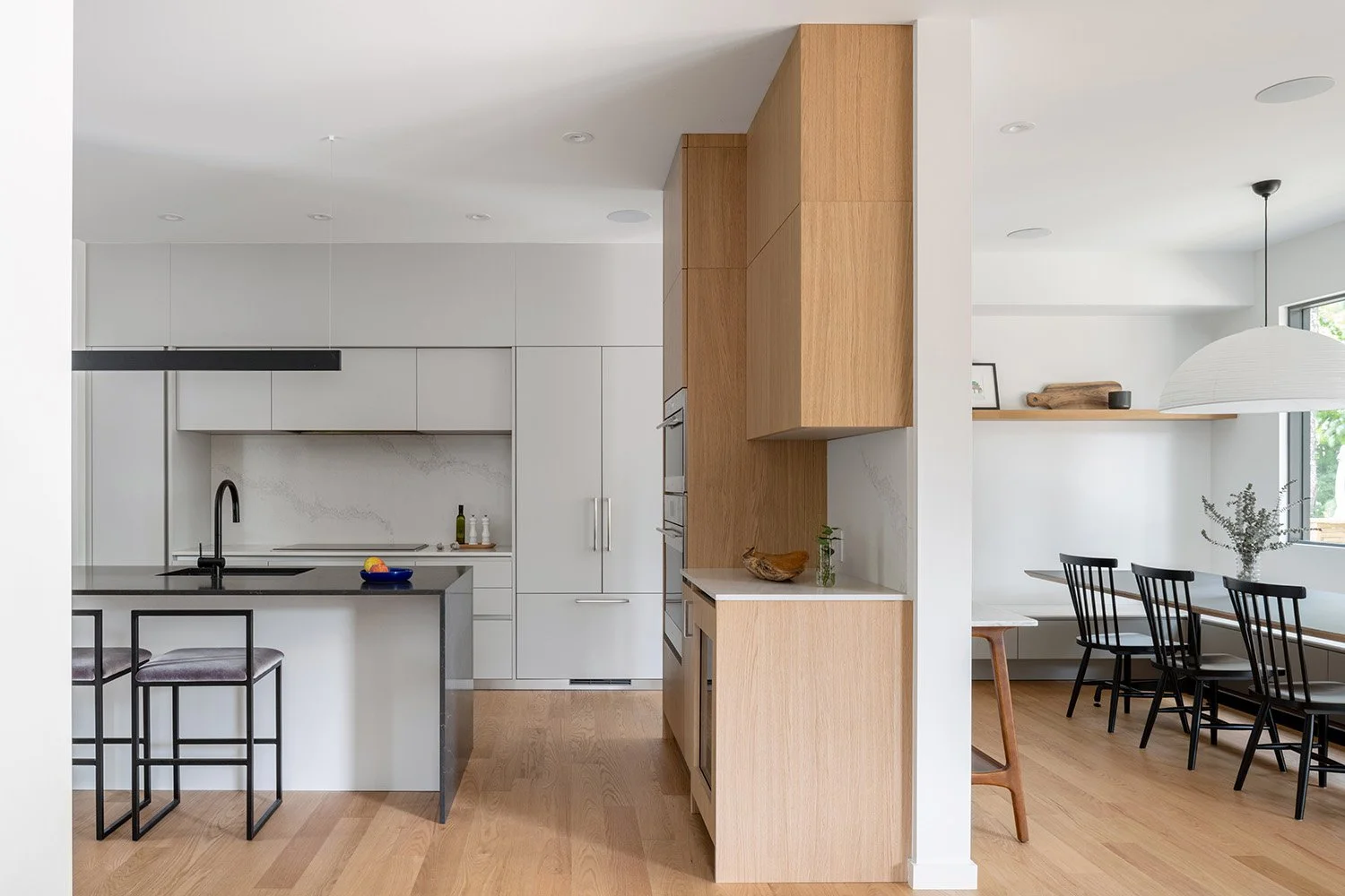 Above and below the main living space, bedrooms and separate living rooms allow family members to retreat. Deep window wells allow for low window sills and an abundance of natural light on the lower level.